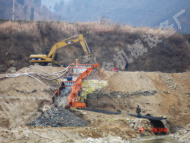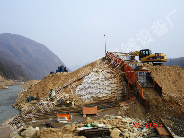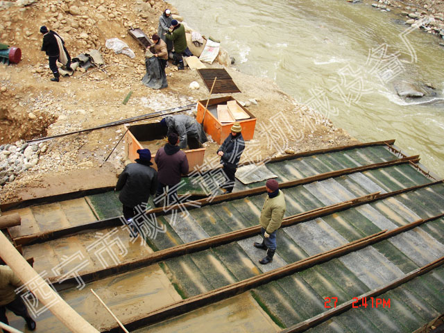 設(shè)計拆裝方便,安裝簡便,是性價比很高的振動床。設(shè)計采用振動電機(jī)上梁振動。性能穩(wěn)定故障率很底。料斗底部需要用噸袋壘碼頭。料斗可配自卸車直接上料,挖掘機(jī)上料、裝載機(jī)上料。型號按吃砂量1000方至5000方分為五個型號。采金工藝是水洗重選法。通過振動使廢料直接排尾。精選的砂子跟水進(jìn)入接砂箱通過分流器。分流器調(diào)整閘板將水和精選料均勻的分配到收金流槽內(nèi)。收金流槽內(nèi)鋪上金氈,前段收金流槽內(nèi)擺放床梯,如果遇到金子顆粒很少可以在金氈上散上貢。收金效果比傳統(tǒng)不帶振動的流槽高30%至40%。是開采砂金最理想的設(shè)備。